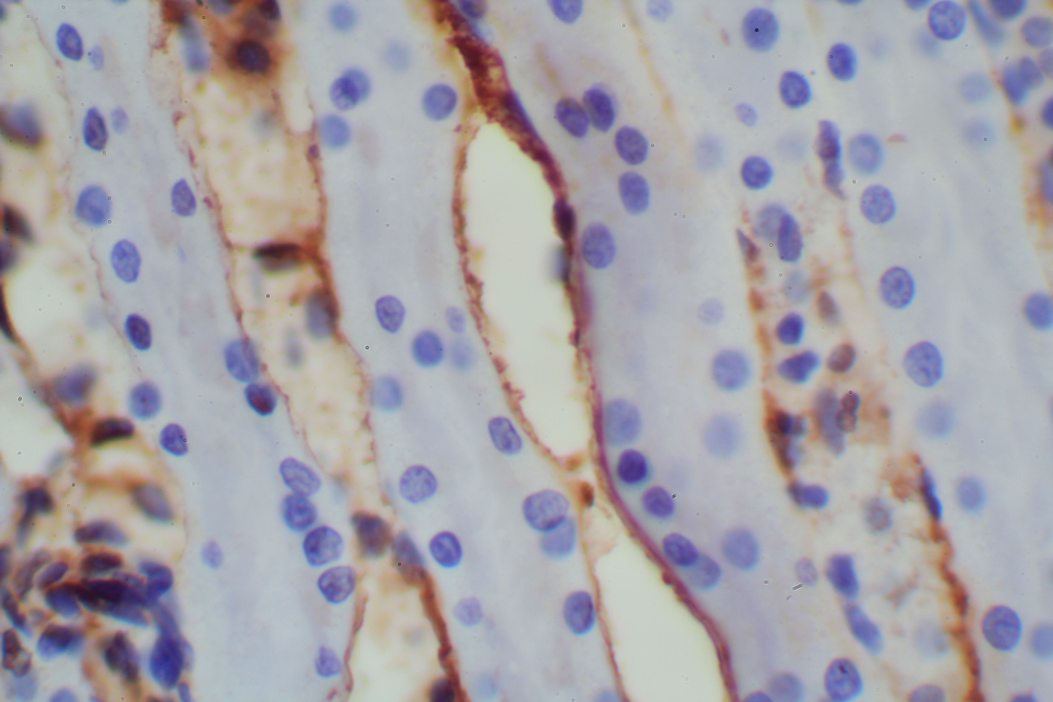 【作用原理】免疫組化實驗中,組織與特異性一級抗體反應后,用HRP酶結(jié)合物與一級抗體進行結(jié)合,并放大鏈接信號,最后用DAB染色液染色后使待測抗原在原有組織中標記出來。